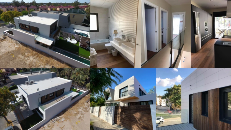 Vivienda de 180m2 en dos plantas, con un diseño que salta a la vista. Se trata de una vivienda de 3 dormitorios dobles con tres baños completos. Su preciosa fachada ventilada acabada en ceramica con nuestros detalles de madera hacen que esta vivienda no pase desapercibida.